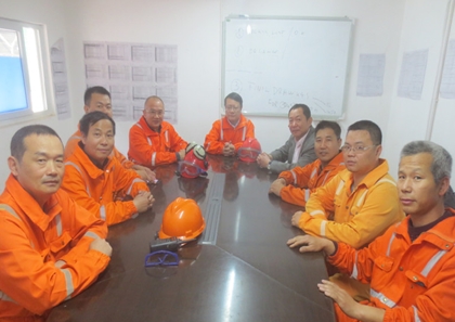 現場慰問后,胡流芳來到業主辦公室進行拜訪。業主施工總監PINO先生見到胡流芳后非常高興。胡流芳對PINO先生致以中國新年的祝福并與他進行愉快的交談。胡流芳感謝業主多年以來對公司的信任及幫助,把三期尾項消除及預試車項目交給公司,公司一定會從各方面給予大力支持,圓滿完成BP交給公司各項任務。