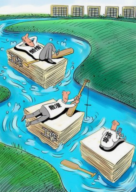 工作的時(shí)候玩忽職守、消極怠工,不認(rèn)真,馬虎了事,三天打魚兩天曬網(wǎng)。