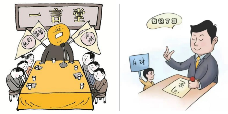 ·大搞一言堂。唯我是從,亂拍板,亂定奪,不容人指出錯誤,就算是有人指出,也會動用權勢進行壓制。