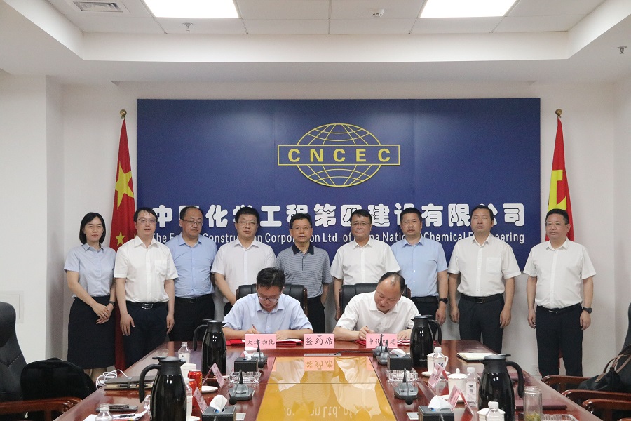 7月9日,公司與天津渤化工程有限公司簽署了戰略合作協議。公司黨委書記、董事長胡流芳,天津渤?;ぜ瘓F有限責任公司黨委書記、董事長王俊明,總工程師、渤化化工發展有限公司黨委書記、董事長張曄輝等出席并見證簽署。公司黨委副書記、總經理周鴻與天津渤化工程有限公司黨委副書記、副董事長詹宏智代表雙方簽署協議。