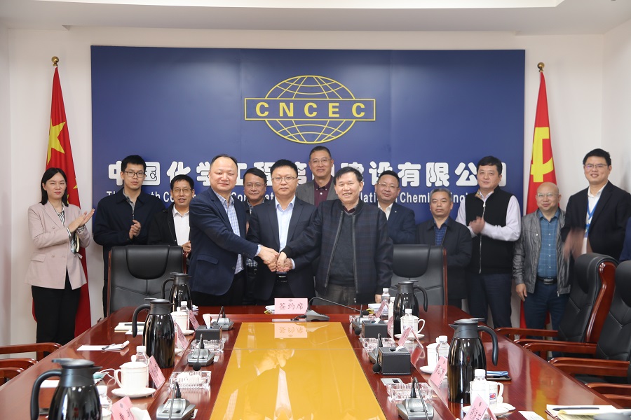 10月11日,公司與廣西自貿(mào)區(qū)宏坤新材料科技有限公司在四化大廈舉行粗苯加氫EPC總承包項(xiàng)目簽約儀式。公司黨委書記、董事長(zhǎng)胡流芳,黨委副書記、總經(jīng)理周鴻,廣西宏坤新材料公司董事長(zhǎng)曹彤、總經(jīng)理劉佳明,中化設(shè)計(jì)公司董事長(zhǎng)羅四順出席并見證簽約儀式。
